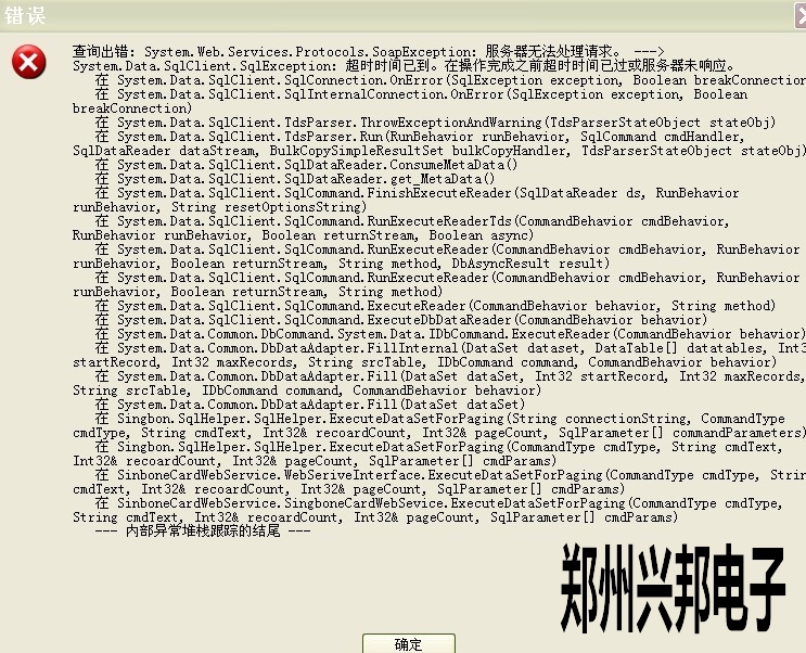 一卡通綜合管理平臺在查詢消費記錄表時出現如下的錯誤提示: