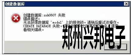 創建數據庫失敗,提示無法獲得數據庫‘model’上的排他鎖,如下圖所示: