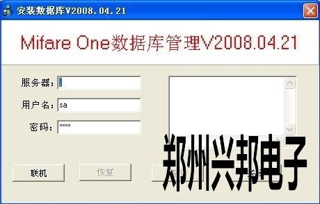 4、先點擊“聯機”按鈕,右邊消息框中提示“連接數據庫成功”后,點擊“恢復”按鈕,當數據庫恢復完畢后,再次打開軟件系統就可以正常登陸了。