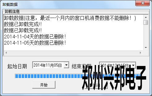 進入數據卸載界面選擇開始時間和結束時間,點擊開始后就會將此段時間的消費數據轉移.