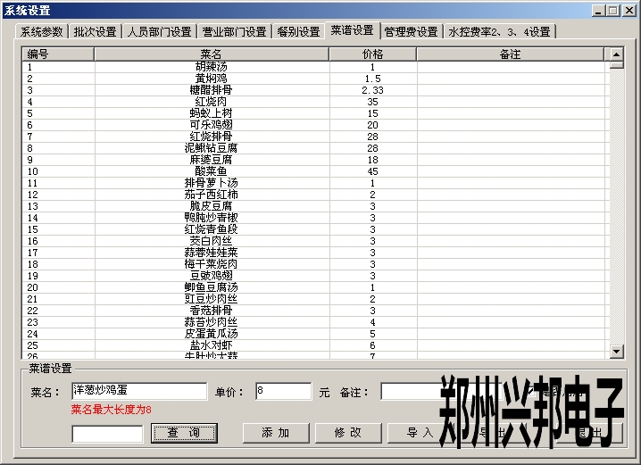 添加菜單時,輸入菜名、單價、備注(可填可不填)、選擇是否啟用,然后點擊添加即可。添加后可修改、導入、導出菜名、單價等信息,最多可添加2000個菜單,菜單添加后不能刪除,可以選擇是否啟用。菜名最大為8個漢字,可以為漢字、數(shù)字、字母或者特殊字符。