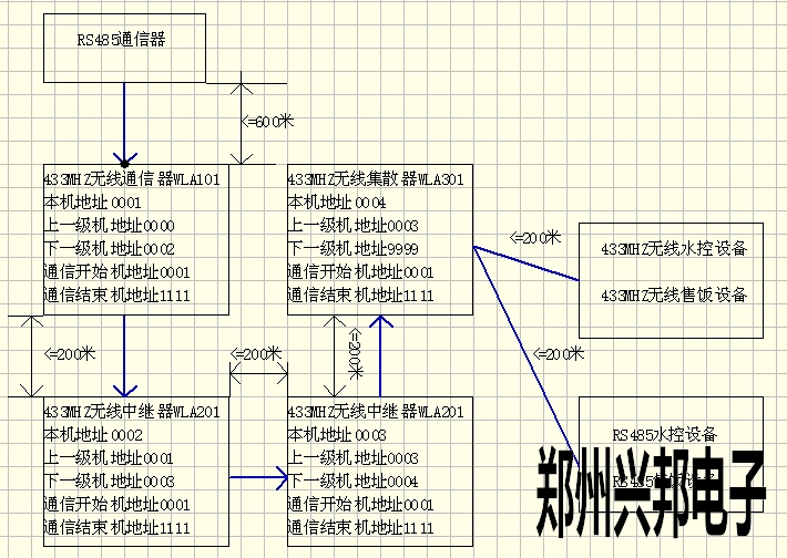 2、一個433MHZ無線通信器(WLA001)的無線覆蓋范圍為直經(jīng)400米(空曠地區(qū));只要在收發(fā)的范圍內(nèi),可連接的終端設備的臺數(shù)理論上沒有限制;地址號9998、9999,終端設備不可用,系統(tǒng)使用;
