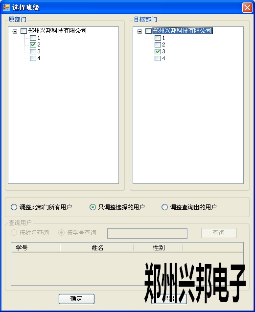 2、也可以通過(guò)調(diào)整部門(mén)來(lái)改變卡信息里的部門(mén)。調(diào)整人員的部門(mén),可選擇調(diào)整部門(mén)所有用戶(hù)、只調(diào)選擇的用戶(hù)或者調(diào)整查詢(xún)出的用戶(hù)。