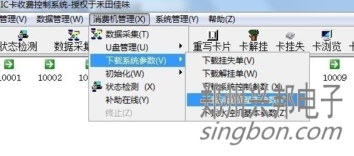 2、設好后要把機器連通。狀態檢測是綠色的對勾。然后下載一下參數。消費機管理--消費機基本參數。