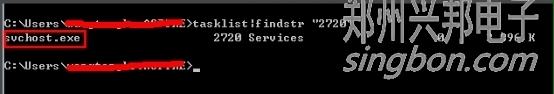 繼續(xù)輸入tasklist|findstr "2720",回車,查看是哪個(gè)進(jìn)程或者程序占用了2720端口,結(jié)果是:svchost.exe