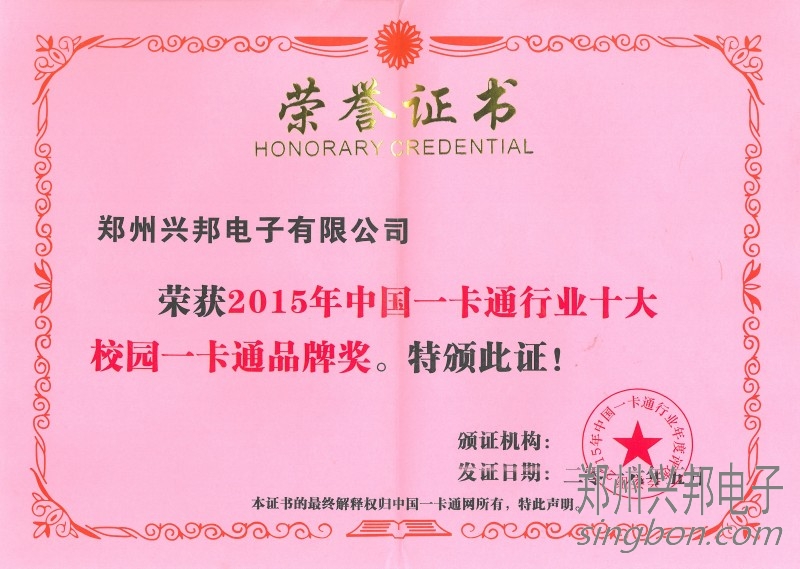 興邦電子榮獲2015年度十大校園一卡通品牌