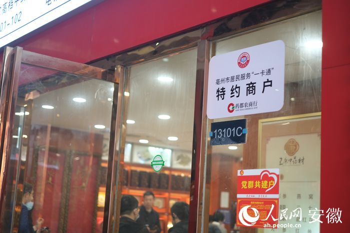 作為全國(guó)最大的中藥材集散地,亳州擁有“千家藥企、十萬(wàn)藥商、百萬(wàn)藥農(nóng)、千億級(jí)市場(chǎng)”,走進(jìn)亳州中藥材專業(yè)市場(chǎng),人民網(wǎng)安徽頻道發(fā)現(xiàn),不少店鋪門(mén)口都掛著“亳州市居民服務(wù)‘一卡通’特約商戶”的牌子。
